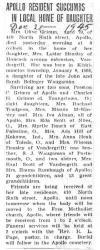 Surviving is one daughter, Mrs. William (Dorothy) Pauly,